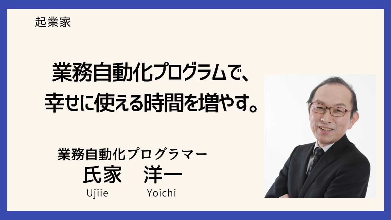 61歳から、エクセルVBAによる業務自動化プログラムの事業をスタートさせた氏家洋一さん。現在は業務自動化プログラマーとしてオーダーメイドの仕組みを構築しながら、大好きなロックミュージシャンのライブを観に毎年海外へ行く日々を送っています。